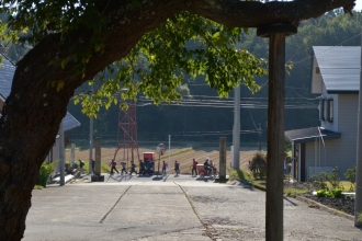 | 自転車で道案内 感謝! | 教わった道を沢づたいに行くと | 鳥居をくぐると |