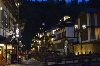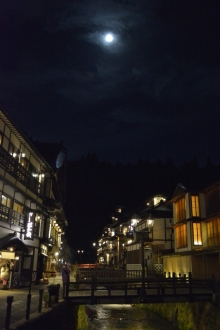 | 一度泊まってみたかった銀山温泉、4泊目の宿をここにとった。江戸時代の初めに延沢銀山の工夫が川に涌く温泉を発見したところから始まり、湯治場として栄えてきたが、今は三層四層の木造旅館の景観で人気がある。 | ||