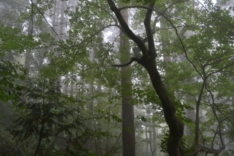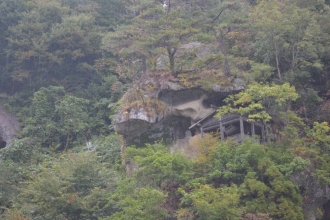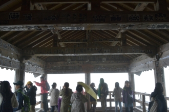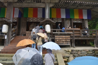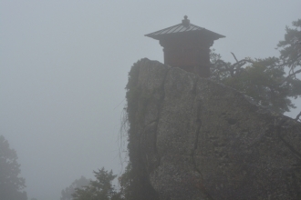 | 御開帳のあと奥之院まで登ることにした。 15年前の5月に来たことがあるが、今回は霧のような秋雨の中を登った。風情のある眺めを楽しめた。 | ||