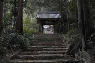 | 養老線 石津駅 | 急な坂道が続く | 境内から山門 |