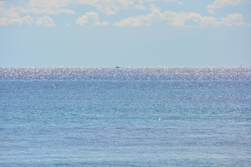 | 再び海沿いの県道34号に出る。富山湾に面した内浦の海が光っていた。絶えず波が押し寄せる日本海側の外浦の海とは変わって穏やかな海だ。 | |