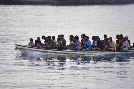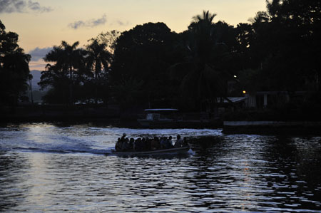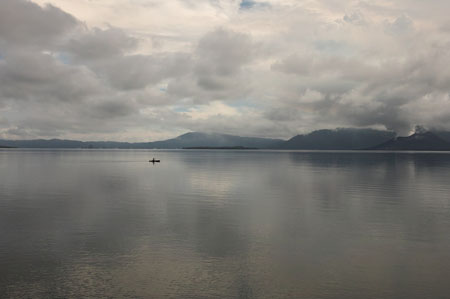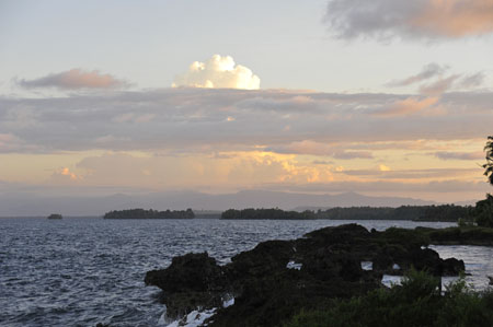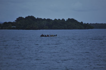 ホテルの近くで時間を潰す。ホテルの敷地伝いに入江があり、島々にいくボートの発着場がある。暗くなっても雨が降っても出ていく。沖の方に出ると波が結構うねる。心配して後で聞いてみると悲惨な転覆事故がやはり起きることもあるようだ。