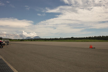 ラバウルの街は火山灰に埋もれ気の毒に思えてならなかった。下痢もおさまらず戦跡巡りも大幅短縮し11日朝空港に向かった。11時20分のポートモレスビー行きに乗るのだが様子が変だ。たまたま一緒になった若い日本の4人と情報を交換すると、彼らの7時30分の飛行機も飛んでいない、飛行場に一機待機している飛行機があるがトラブルで引き返してきたもので、ポートモレスビー行きはまだラバウルに入ってきていないということが分かった。彼らも私もポートモレスビー14時20分のフライトで成田に帰る予定なのだ。成田便は週に2便しかなく乗り遅れれば更に4日をニューギニアで過ごさなければならない。激しい下痢の私は一刻も早く日本に帰りたい!