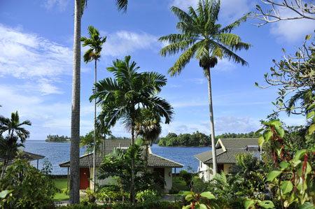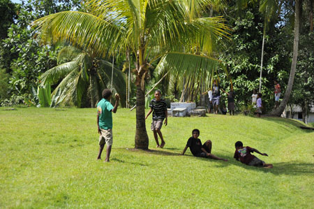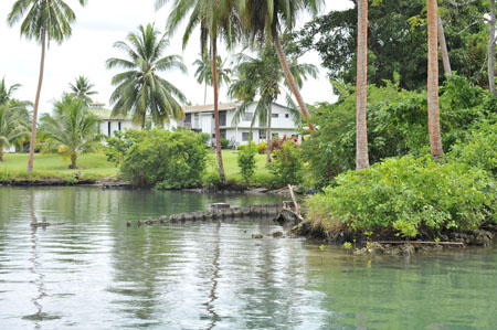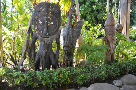 空港から車で30分程でマダン・リゾートというホテルに到着。玄関には木彫りのさもニューギニアらしい人形が出迎えてくれる。思った以上に蒸し暑く、日差しもさすがにきつい。