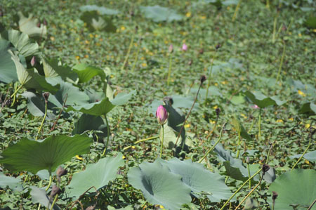 マーケットの近くに蓮の花が咲いている池があるが、最近ワニが出たと話題になっているとのこと。車で少し田舎に入ると写真のような小さなマーケットをよく見かける。