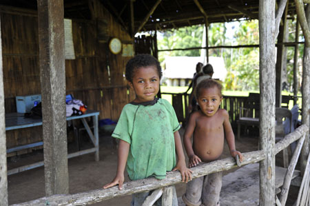 ようやく目的地のバリルナ村に到着。パパと呼ばれる族長のライさん、終始にこやかに我々と話をしたり、子供たちを見守ったりしておられる。