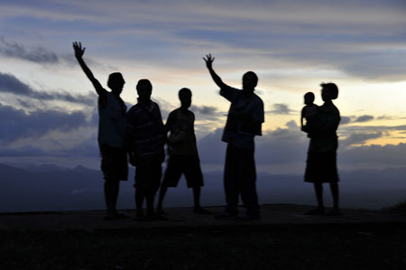 大自然の中の落暉。70年近く前に日本の兵士たちも眺めた、きっと望郷の念を抱いて。写真を撮っていると小学校の先生や奥さんや生徒らしき子供たち、色んな人が集まってきた。帰るときに盛んに手を振ってくれた。