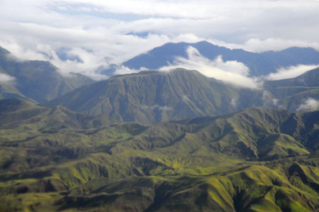 出発の前日の6月3日に風邪をひいたらしく38度の熱が出てしまった。パブロンを夕食後と就寝前に飲んで4日の朝には36度8分まで下がった。念のために家の近くの医院に行って風邪薬をもらって、午後成田に向かった。21:05発のニューギニア航空便に乗り、5日の4:40にポートモレスビーに着く(時差は+1H)。7時のマダン行き国内便に乗り換えて、8時に小さなマダン空港に到着。途中、雲の切れ間からオーエン・スタンレー山脈とおぼしき峻険な山々が見えた。