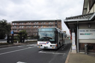 | 2日JR岐阜駅を7時57分に発って、草津で東海道線からJR草津線に乗り換え、9時39分に甲賀郡の石部駅に到着。勇んでホームに降りようとしたら、スッテンコロリン!イテテッ!! なんと列車とホームの段差が30pほどもあり、踏み出した足は空を切り、階段を踏み外したようにホームに転げ落ちてしまった。全身打撲! 気を取り直して、湖南市のコミュニティバスに乗り込む。途中、石部高校の建物が目にとまった。 ここは滋賀県の南東部で、大津から東へ20qほどの所。 |