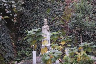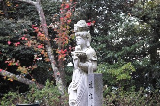 | 石山寺駅から京阪電車を乗り継いで上栄町下車、徒歩8分。長等(ながら)山の中腹に到着。石像の「乗り切り観音」が目に入る。初めて知る観音様だ。困難を”念彼観音力”で乗り切らせていただけるのであろうか。 近松門左衛門は若いころ近松(ごんしょう)寺で修行したことあり、ペンネームの姓はこの寺に因んだとされる。寺からの眺めは、マンションが眼前にある三井寺より良い。 | ||