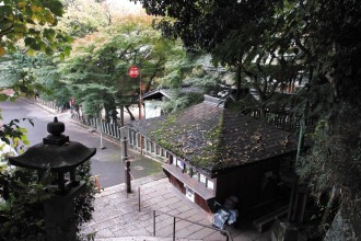初めて知ったが、最澄は比叡山の麓のこの坂本の生源寺の地で生まれた。境内に産湯井が残る。納経を終えるとお腹が空いてきた。住職に尋ねると「味は一番、電話は二番、店は角から三番目」と“鶴喜そば”という店を教えて下さる。創業300年、店は築130年、黄色いツワブキが咲いていた中庭もいい。無論そばも美味しかった。おかみさんから札所巡りのことを色々尋ねられた。茶店でコーヒーを飲みゆっくりJR湖西線比叡山坂本駅に。そして宿のある近江高島駅へ。 |