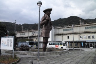近江高島駅前に「カリバーメルヘン広場」があり、ガリバー像と小人達の像がある。高島町の町おこしの施策で、山間にはガリバー青少年旅行村もある。電車を待っているとサイクリングのグループがトイレ休憩で駅にやってきた。私もanchorのバイクもってますよ話しかける。瀬田から出発してきたとのこと。一日で琵琶湖サイクルラインを一周するようだ。時間はまだ8時50分、一周193qある。瀬田からここまで約50q、何時に出発してきたのだろう、気にかかる。 |