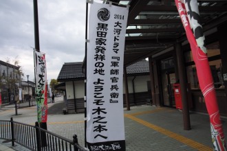 | 石道寺は4時に閉門となる。このために早朝から急いで回っていたわけだが、宮部さんに送っていただき3時過ぎに着くことができた。宮部さんは最近までボランティアで賤ヶ岳古戦場を中心に観光ガイドをされていて、色々説明を伺う。ちょっと寄ろうと案内されたのが木之本の町にある「戦国大河ふるさと博」会場。 賤ヶ岳の合戦関連の展示がされている。2014年のNHK大河ドラマが黒田官兵衛を取り上げ、地元はもり上がっているようだ。宮部さんの住まわれる黒田の郷が、官兵衛生誕の地だ。 | ||