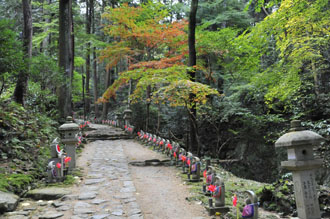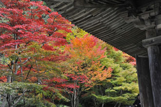 | 本堂前の二天門 | 国宝本堂と血染めの紅葉 | バイク地蔵 |
