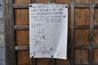 | 百済寺からは3.5qの道のりで、湖東三山の寺院とは異なりまさに里のお寺といった感じの大覚寺。本堂の前に立ち経を唱えていると、さすがに膝がガクガクとしてきた。住職は留守で地図にあったお宅を探し当て、ご朱印をいただく。 | ||