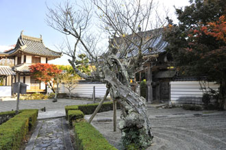 | 山門 | 京都御所清涼殿を移築した本堂 | 梅古木 左奥は鐘楼ならぬ鼓楼 |
