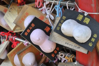 | 知らなかったがここは「お乳のお寺」として有名なそうだ。古くから母乳や子授けに霊験があり参詣者が絶えないという。最近はバストアップを祈願する若い女性も多いとか。それにしても絵馬までオッパイとは驚いた。 | ||