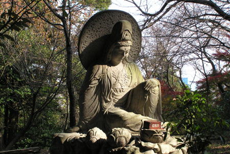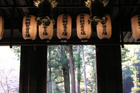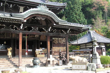 金堂から更に奥に行って、石段を登り、観音像を拝し、もみじを仰いで、札所の観音堂に至る。