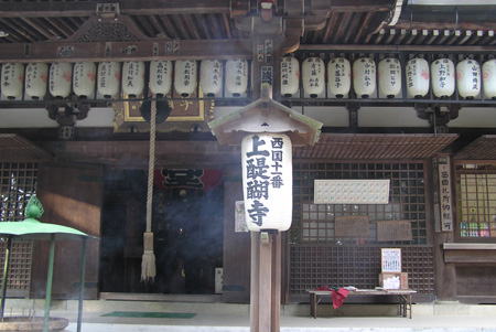 醍醐山一帯の山上部が上醍醐寺で、カーナビに導かれ宇治から滋賀県境に北上し山深いところで車を止めた。 こられたハイカーの人達に訊くと、この先15分ばかりという。 教えて頂いたとおり二人で尾根伝いの山道を登っていく、30分近くたってようやく境内に入る。そこから石段をおり国宝の薬師堂の前をとおり目指す札所の准胝堂にようやく到着。 もっと楽な道があるはずと思い納経所で尋ねると、『来た道が一番近い、下醍醐寺から登ってくると1時間以上かかる』とのこと、あさましい考えを反省した。
