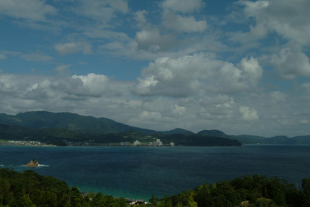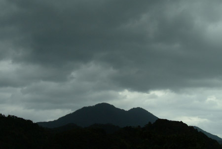 10時半にホテルを出て、カーナビの指図どおりに山の小道をぐるぐると抜け舞鶴の街に。 舞鶴では「引揚げ記念館」にいく予定であったが、遅い出発となったので取りやめ、海上自衛隊の桟橋の護衛艦を横目に先を急ぐ。泊まったホテルの土産コーナーの案内によると、「肉じゃが」は舞鶴が発祥の地とのこと。なんでも、東郷平八郎がイギリス留学時代のビーフシチューを懐かしんで、海軍の厨房に日本の食材で作らせたのが始まりとか。 やがて二十九番札所がある青葉山が見えてきた。「若狭富士」とも呼ばれる青葉山だが、この日は台風の影響もあって、暗雲たなびき怪しげな山容。昔、唐からきた威光上人が霊感を受けて寺を開いたという話もうなづける。
