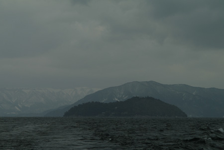渡岸寺から車で30分走り、長浜の港に着く。三十番札所の宝厳寺は琵琶湖の中にある。その竹生島には冬季は午前と午後に一回の遊覧船で渡る。昼食をとって桟橋に出ると三毛猫がいた。13時15分出港のべんてん号に乗る。