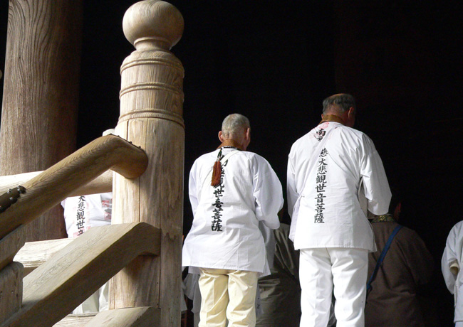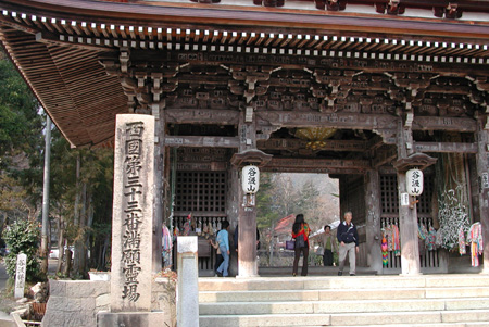 山門をくぐると木立にそって奉納のぼりが何本もたち、中央に焼香場がある。何年も変わらない境内である。 手水場では33番までよく来たと、満願の褒美に観音様が水を注いで下さる。