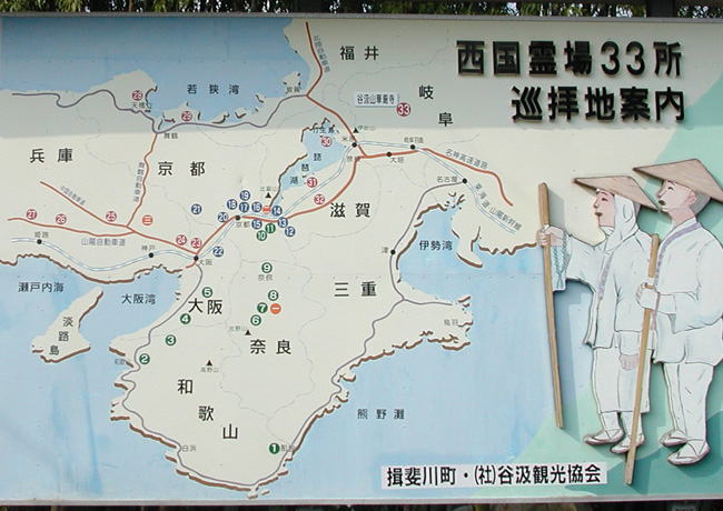 駐車場から参道へ出るところに、大きな三十三ヵ所の案内図が掲げられている。満願を迎えた人々が来し方を振り返る趣向にもなっているようだ。
