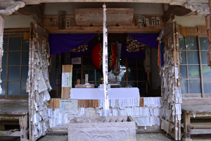 出雲は祈りの深い土地柄のようで今も出雲三十三所を巡礼する人が多い。観音堂には納め札が貼られ、他所ではすたれた木札も打たれている。数十回と巡礼を重ねる地元の方も多く、中には108回巡礼の奉納木札も見られた。 |