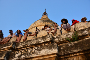 島根県の出雲三十三所をまわった。神様だけではない、仏様にも祈る文化がある。楽しみにしていたお寺の一つが安来の21番清水寺。6世紀末の草創という古刹で、安政年間に信徒が一万人講を作り、住職二代・大工三代にわたって三重塔を造営したという。その塔には肩幅ほどの狭い階段をつたって上ることができる。 (2015年3月29日〜4月2日) |