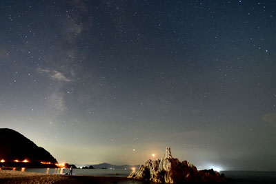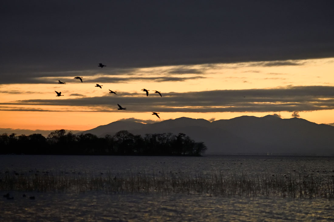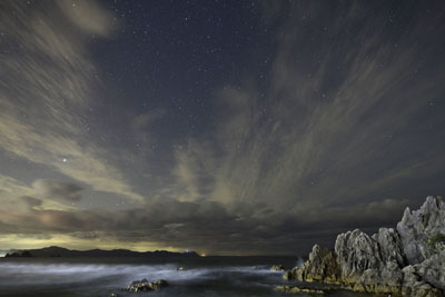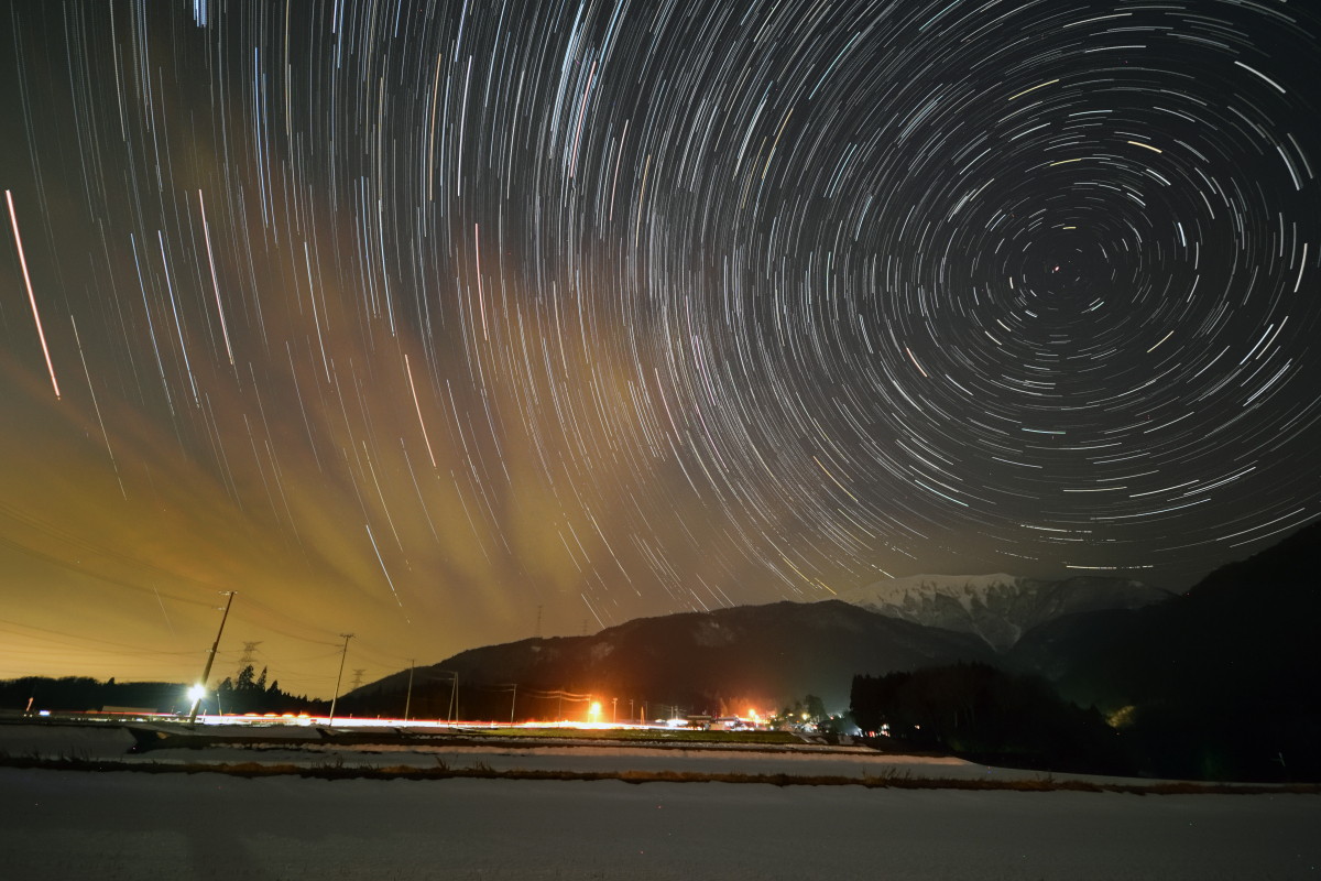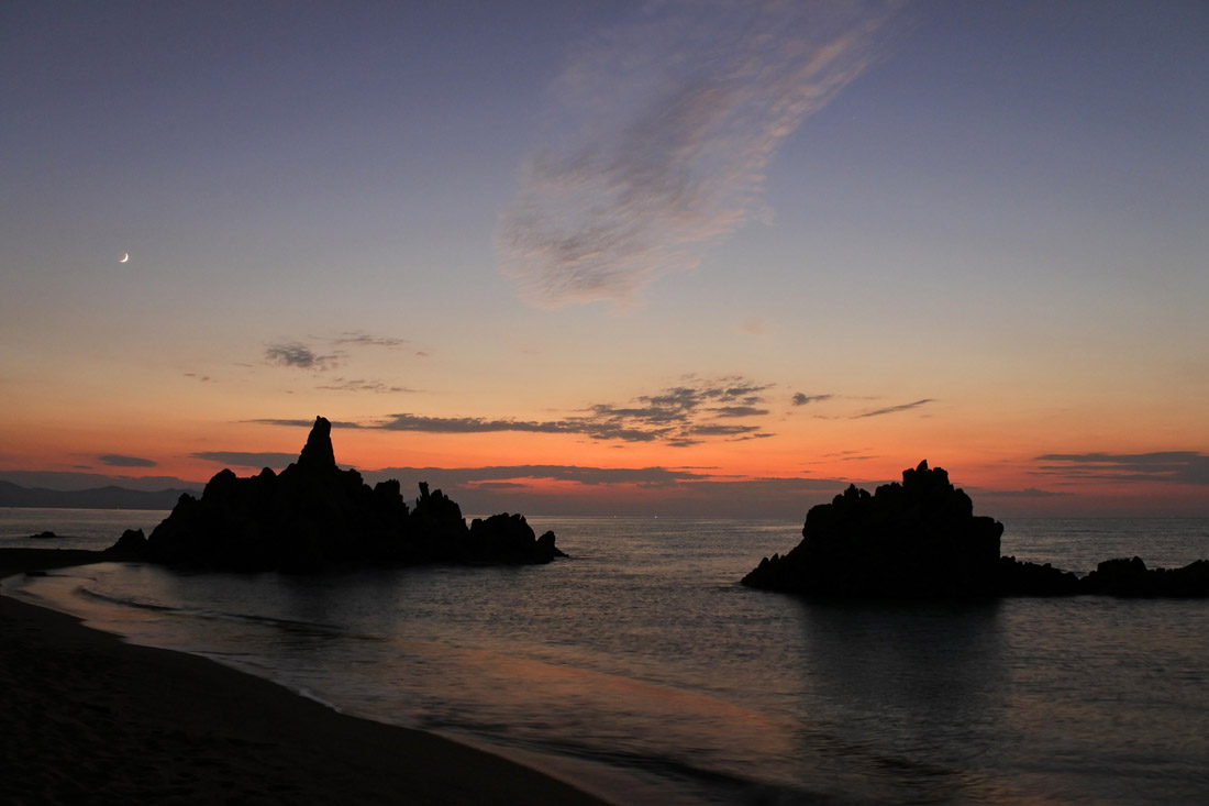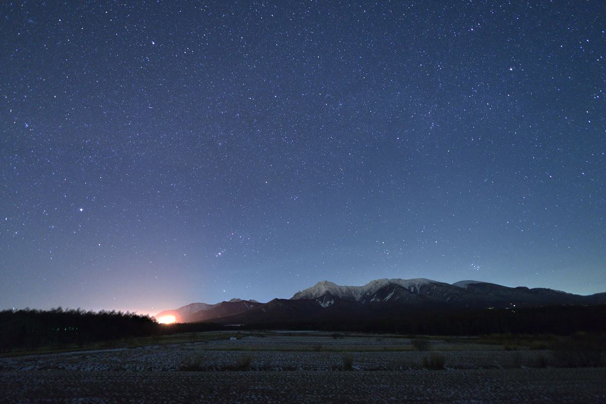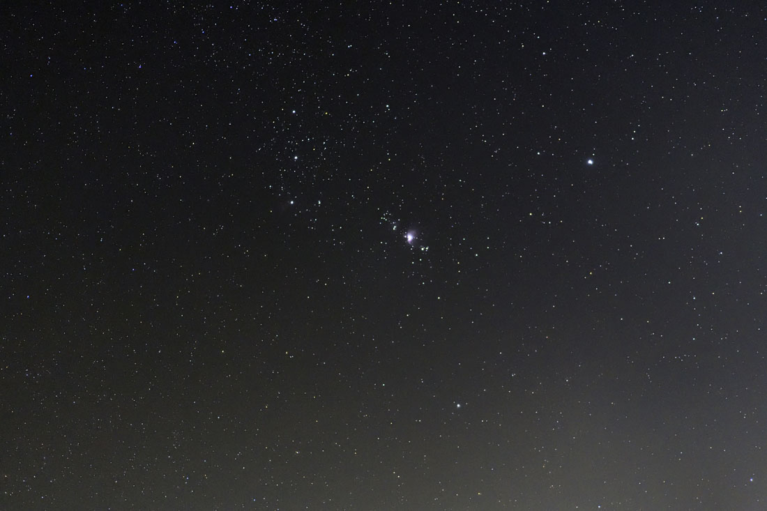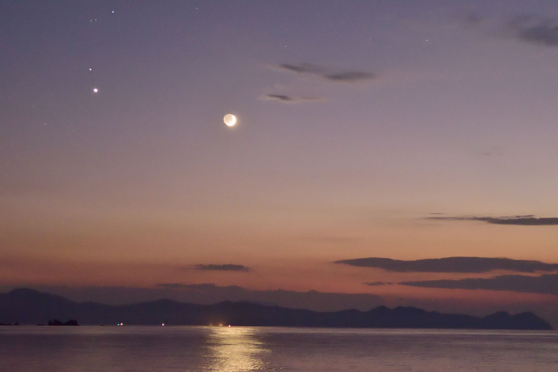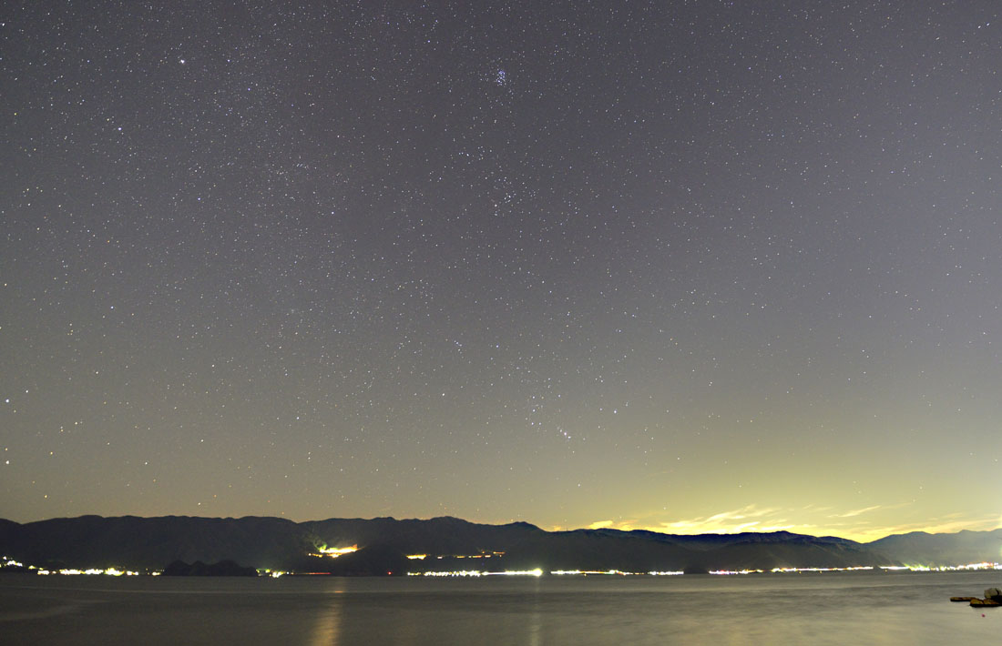 敦賀半島の色浜という所から敦賀湾越しに昇って来るオリオン座を撮りに出かけた。あいにく下の方に雲があり敦賀の街灯りを反射して思うように撮れなかった。そのうえピントまでミスり家に帰って見て、ガックリとなった。5日にリベンジを果たそうと思い、夕方に琵琶湖、夜に敦賀の予定で出発した。 琵琶湖では予報が外れてしっかりと雲が湖上にあった。狙いは月の入り直前の地球照の月。対岸の山並みの上にわずかに雲の切れ間があり、ここを月齢1の地球照の月が沈んでいくのをタイムラプスにしようと思った。夕景と合わせて1時間半のインターバル撮影を行ったが、不思議なことに月は写らなかった。細すぎる月は低い位置では写らなかったのだ。冷静に考えれば琵琶湖も敦賀湾も雲でダメで、サッサと帰るべきだったのだろう。でもあの雲間に落ちていく細い月の妄想の方が強かった。 (2021年11月29日、12月5日) |