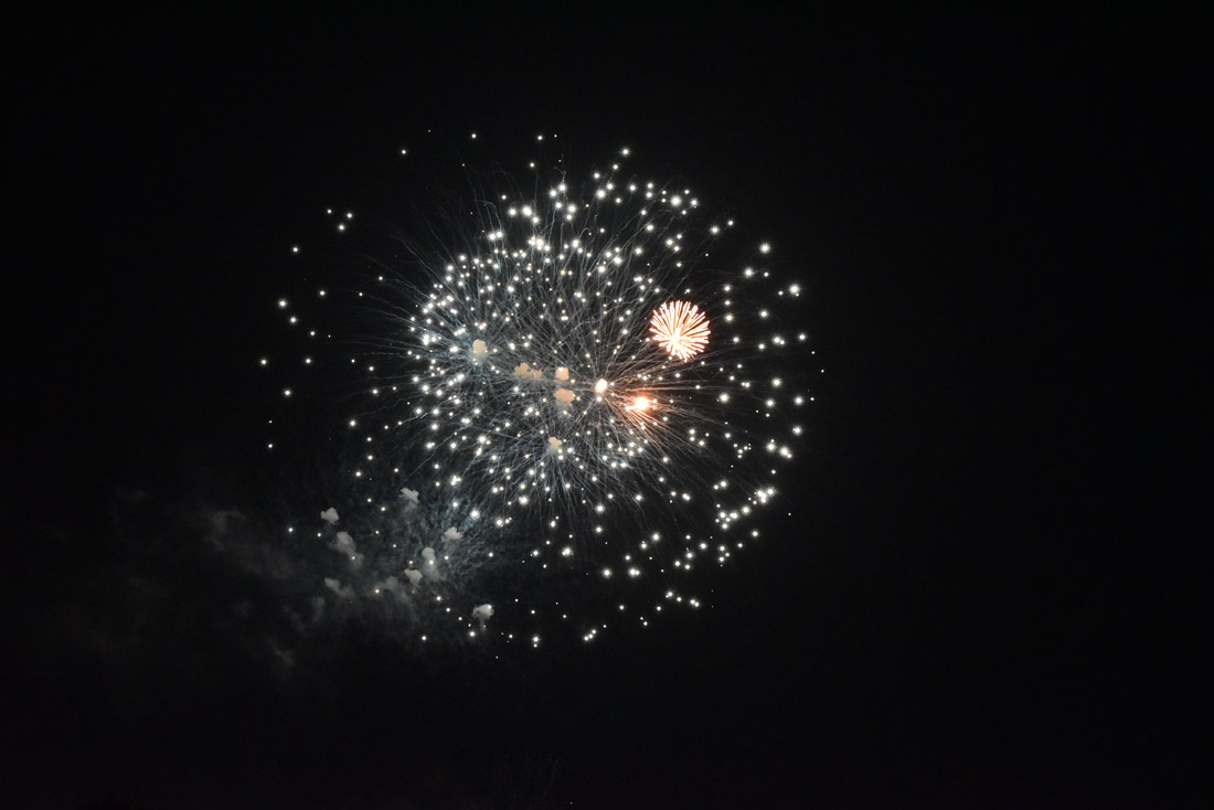 毎年 8月の終わりに催される夏祭り。ここで打ち上げられる2000発ほどの花火が岐阜県南部の木曽三川水系で7・8月に行われる花火大会の〆となる。因みに境川は長良川の支流の一級河川。例年は家の近くで家内と見るのだが、今年は会場まで行って間近に見た。途中から写友が合流してきてチョット賑やかな花火観賞となった。 (2025年08月23日) |
