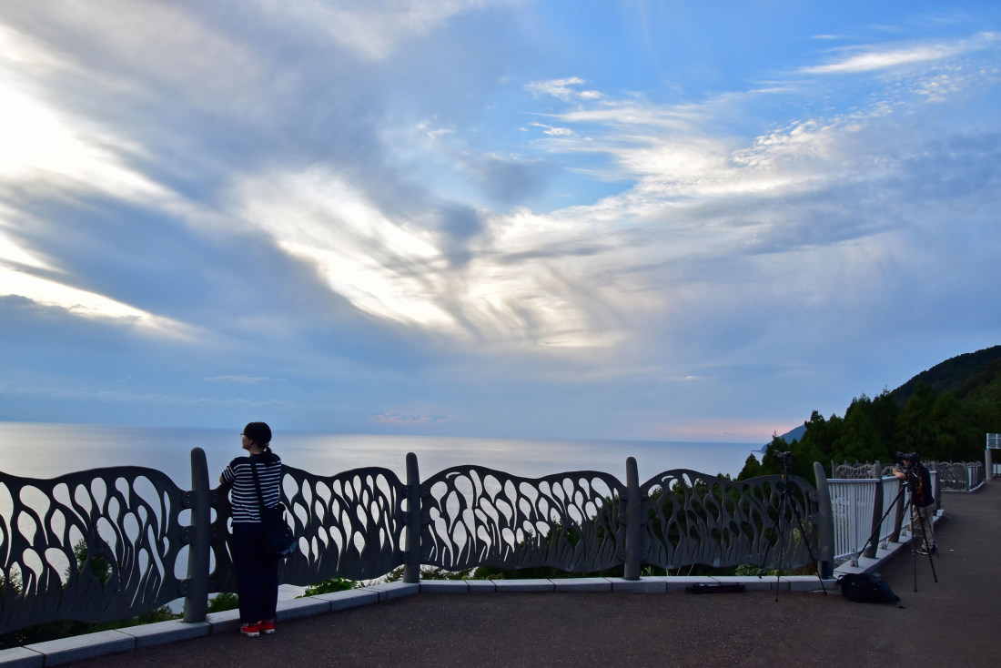 朝から病院に出かけた家内が帰ってきて、コロナ陽性だったと言う。私はノドも痛くないし熱もない。とりあえず今日一日は感染を避けるべく午後から夜まで出かけることにした。8月から行きたいと思っていた南越前町の道の駅河野にまっしぐら。日の入り方向の雲が厚く(2枚目の写真)、期待したような夕焼けにはならなかったが久々の日本海の夕景を満喫した。いつもどおりタイムラプス用の撮影もしたが、カメラの設定を前回使用の中央部重点測光のまま撮っていてオジャン。今回は道の駅に来合わせた人と全く話をする機会がなかった。
