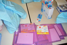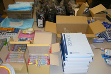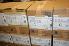 4月に入ってボランティアの募集があったので参加した。女川地区等への救援物資のパック作りで、200人程が参加したようです。小学生向けのグループに入った、私が最年長のようだ。学用品をビニール袋に入れていく作業で、私の担当はピンクの下敷きとテープのり。新入学応援パックが沢山できた。 (2011年4月) |