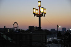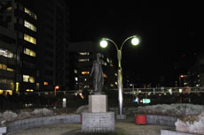 2月に会社関係の人達に築地を案内して頂いた折りに築地本願寺を通りすがりに見た。3月に入って会社の帰りに写真を撮りに行くことにした。東銀座で地下鉄を下り築地方面へ歩き始め万年橋を渡ると、「築地川銀座公園」を発見。「名犬チロリ」と「月を呼ぶ」という女性の銅像があった。捨て犬チロリは名誉セラピードッグ認定第一号犬となり、この像がある。「月を呼ぶ」は名前とともにロマンチックな雰囲気を醸し出していた。築地本願寺は関東大震災のあと昭和9年にインド様式の石造りで再建されたものだ。門の中にも入れていただき写真を撮らせてもらった。帰りは鮨を食べて、銀座を抜け有楽町の駅まで歩いた。 (2011年3月) |