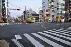 3月13日の日曜日はマンションにいると余震で滅入るので、外をぶらぶらと歩くことにした。夕方には隅田川方面に行った。東京に路面電車を発見、都電荒川線で早稲田行の電車が郷愁を漂わせながら通り過ぎて行った。隅田川にでるとまた郷愁を誘う夕景であった。 (2011年3月) |